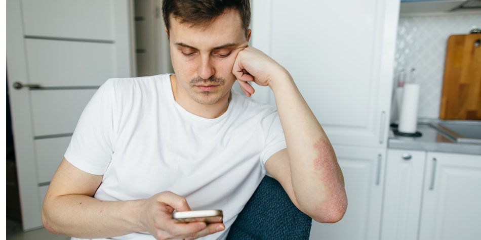 Psoriasis is a chronic autoimmune condition that often presents as raised red patches of skin, sometimes topped with silver scales or flakes. It happens when your system becomes overactive, which can cause skin cells to multiply too quickly and trigger inflammation. It can be itchy and painful, especially if the skin dries out and cracks. Patches commonly appear on the back, elbows, face, feet, knees and palms. In some cases, the inflammation caused by psoriasis can lead to joint swelling and pain or changes in the texture or color of fingernails and toenails.